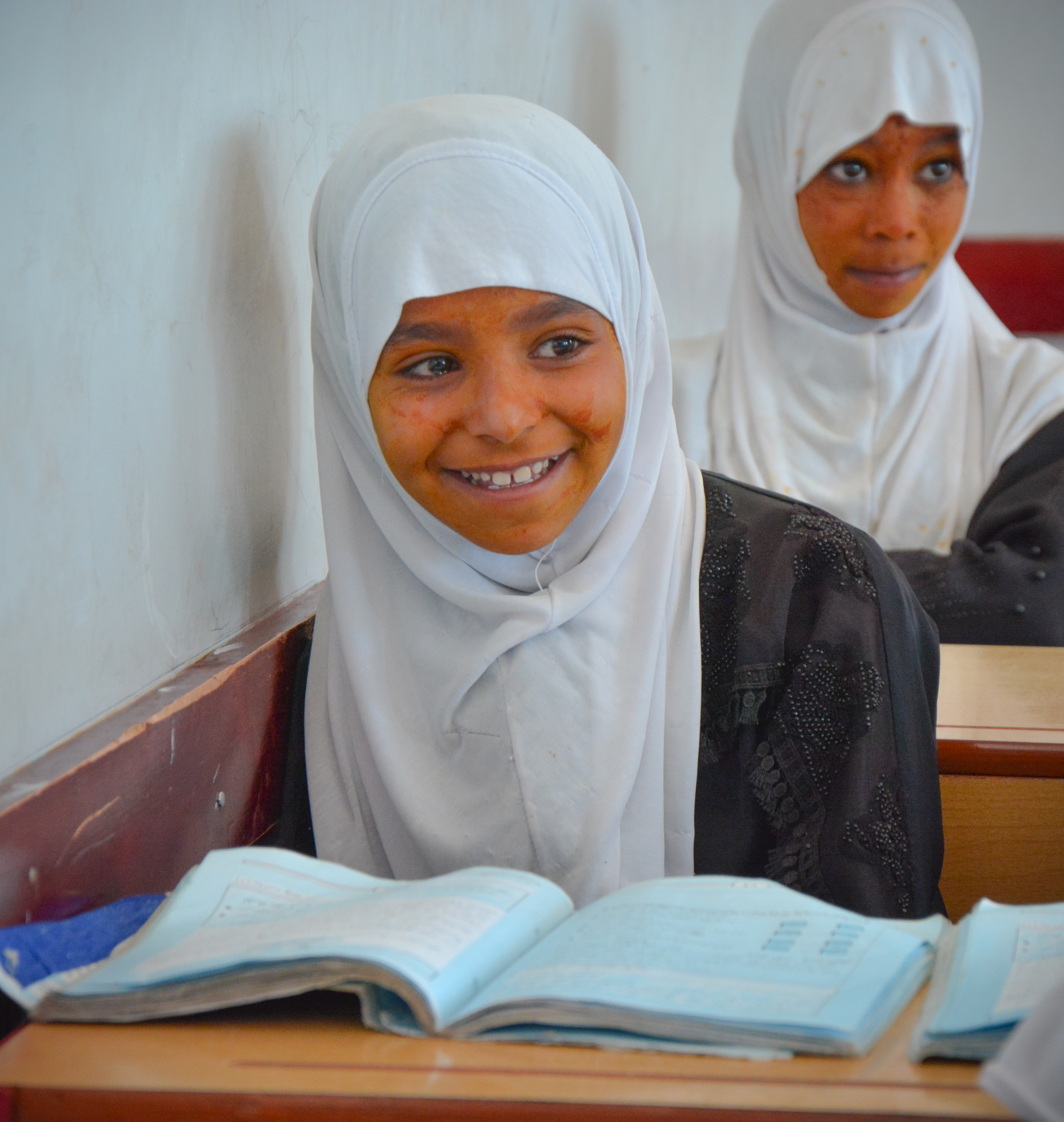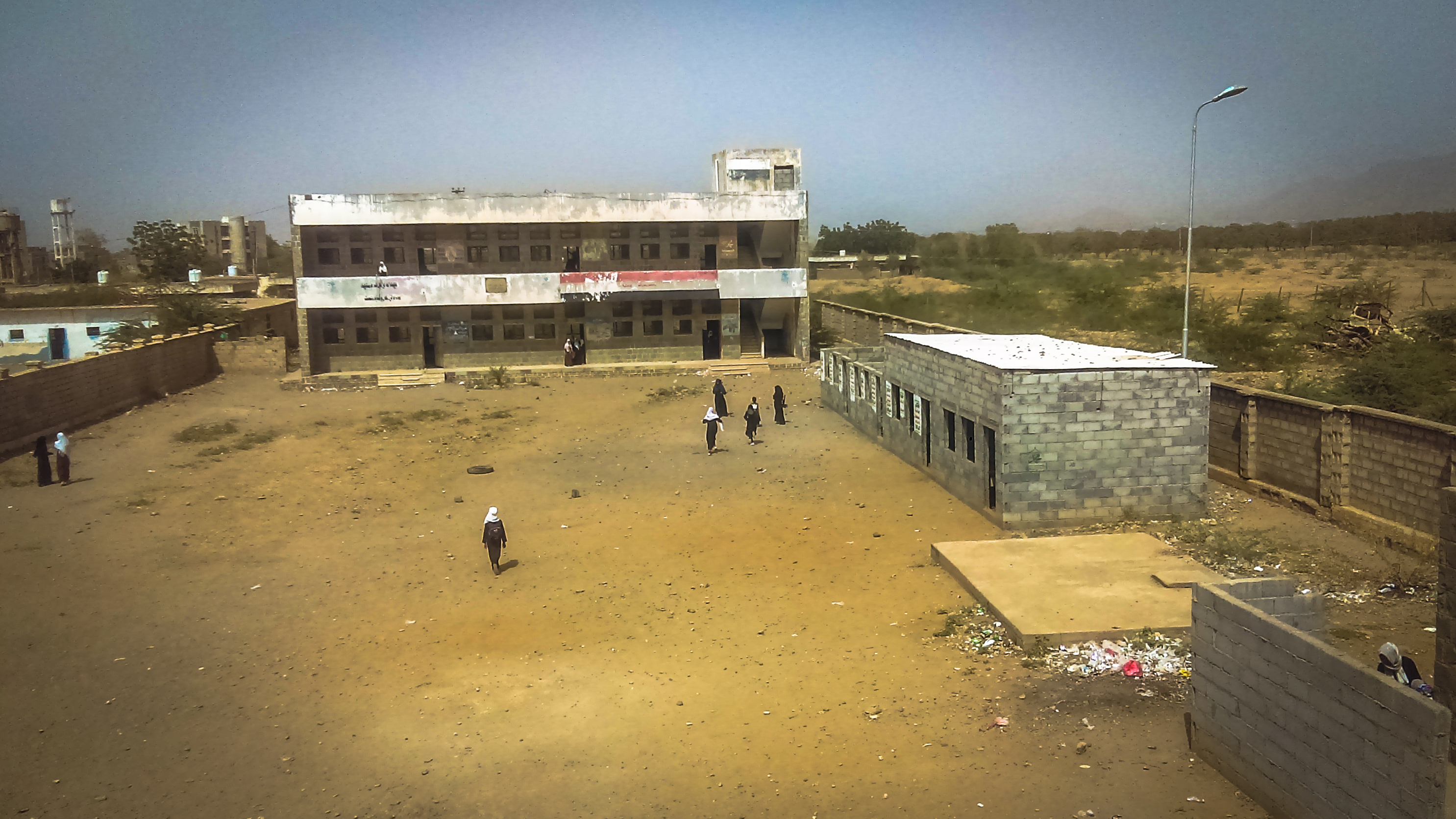 طلاب مدرسة علي بن علي يستخدمون مختبر الكمبيوتر بعد التثبيت في النظام الشمسي في مدرستهم، لحج (YEEAP 2020)